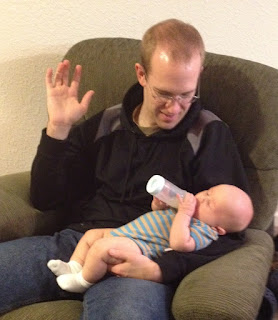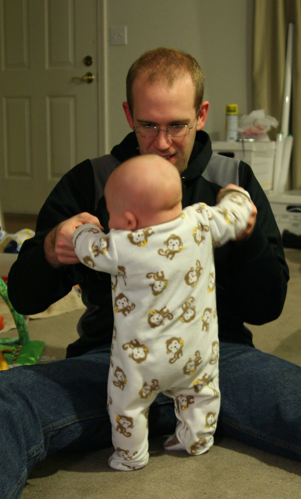 David’s taken an interest in his hands. He’s been trying to eat them for a while now, but he’s recently started to stare at them. I think he’s finally starting to realize that they’re connected to him and that he can move them.