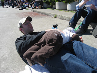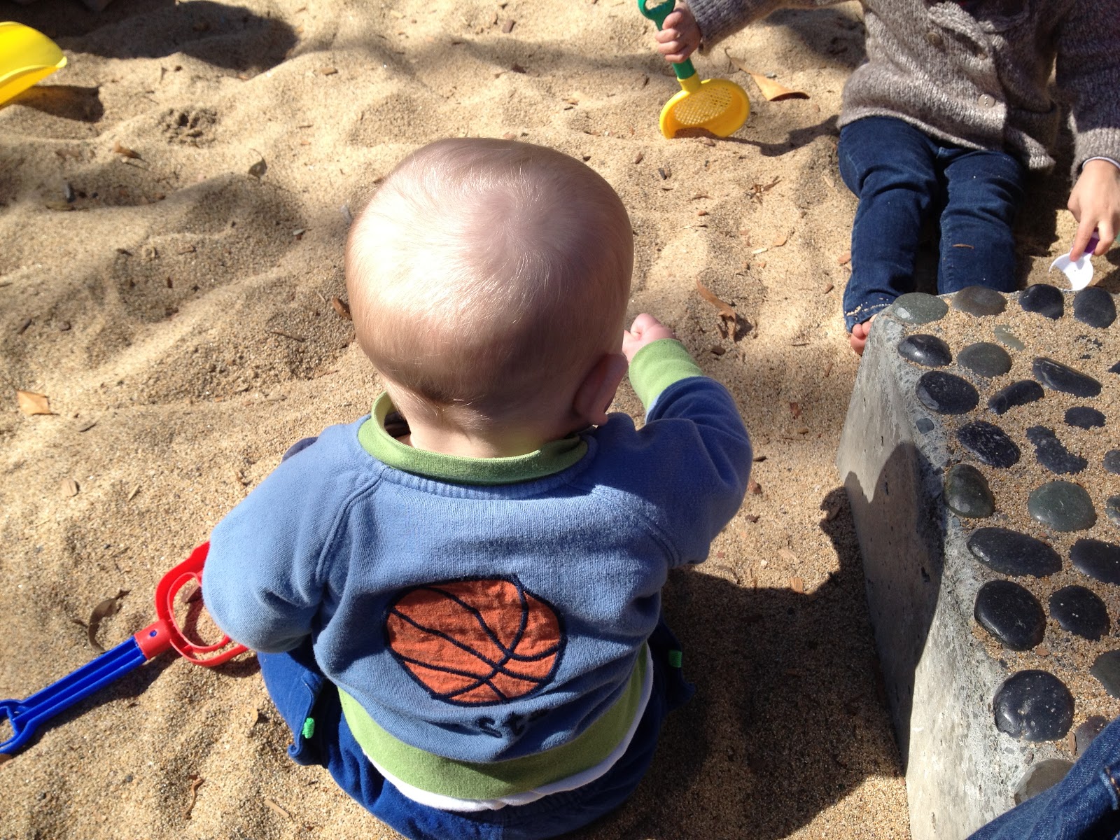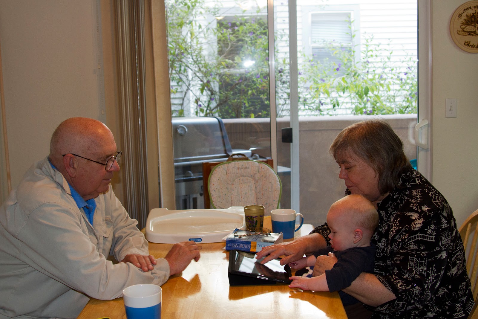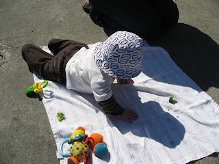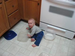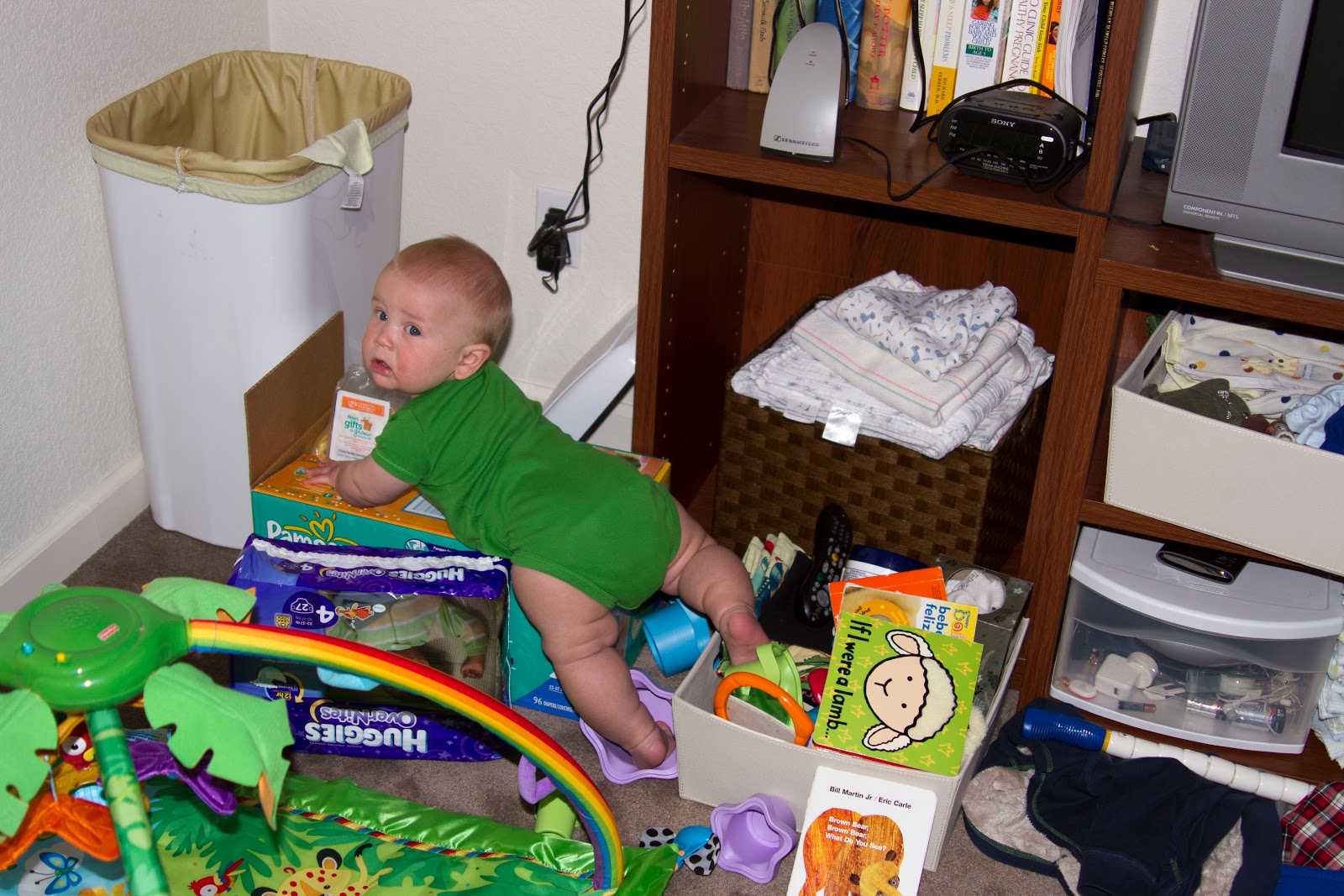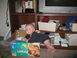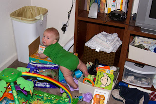 He’s also grown quite a bit in the past month. Unofficially, we’ve weight David at 21.5 lbs! Here’s our little Buddha showing off his well-marbled physique: