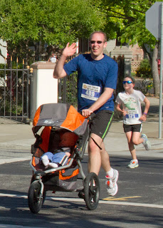 As part of the San Carlos Hometown Days, the Rotary Club sponsors a 5K / 10K Fun Run each year. I usually forget about it until I’m running for exercise on a Sunday morning and happen to have ~500 “friends” joining me. But this year, we remembered early enough to actually register! I ran the 5K, pushing David in the stroller, while Kate provided encouragement and picture-taking.