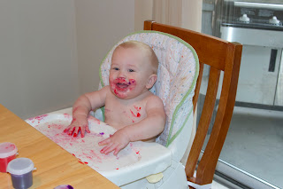 Chris just moved David to the big bathtub upstairs. He was anxious at first, but he quickly warmed up to it and loves it now. He’ll even crawl up to the spout and put his head under the stream of water when it’s on. It’s pretty cute.