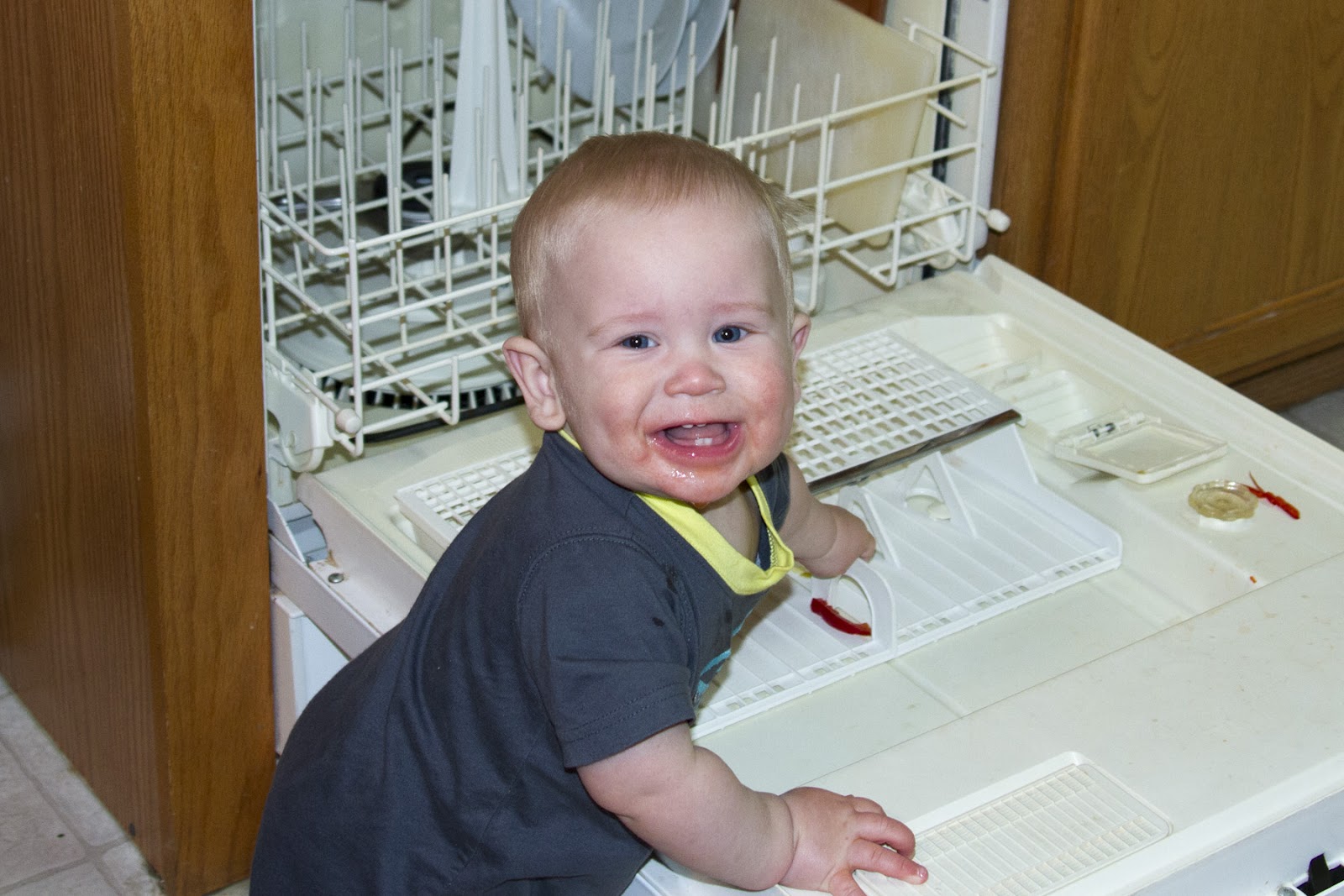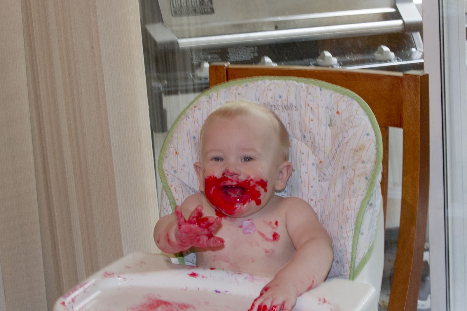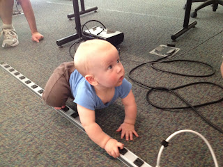 Over the weekend, David took his first unassisted steps! Unfortunately, we haven’t been able to capture the little guy’s new skill on camera, yet. In the meantime, here’s a video of David hysterically laughing at Chris. Enjoy!