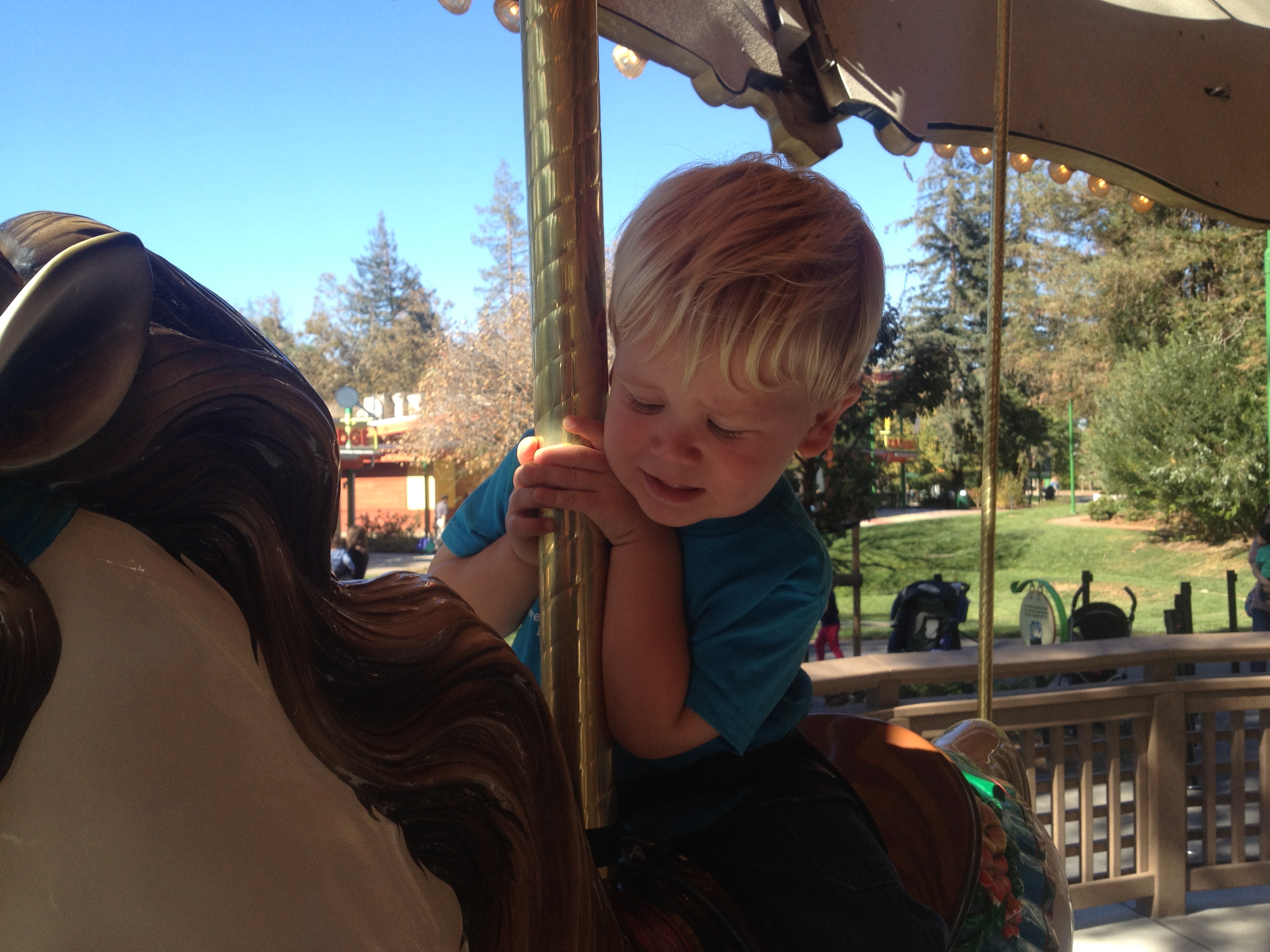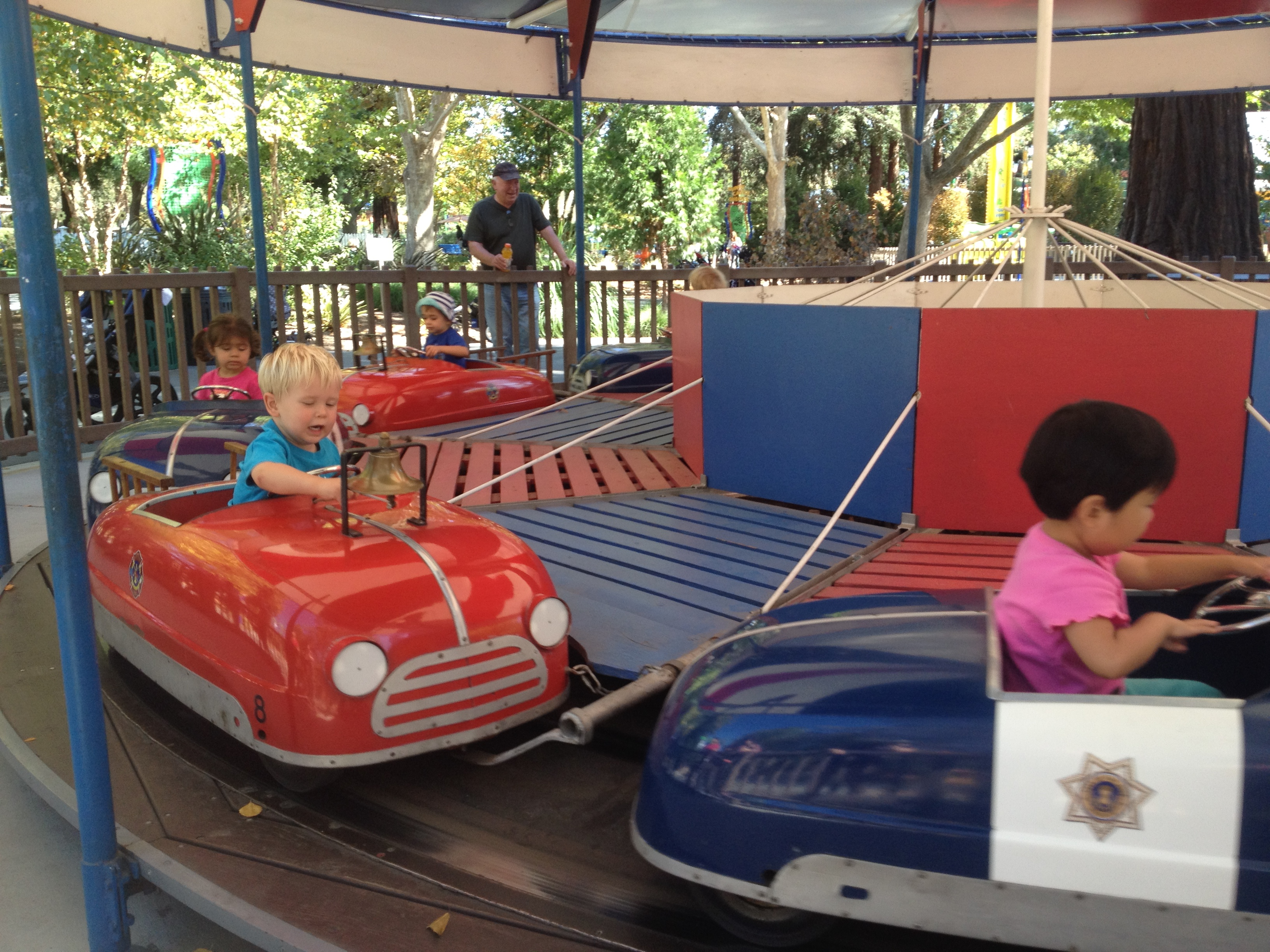 We’ve been getting into the swing of fall with weekly preschool and gym classes, but we’ve still found time to enjoy some less routine things. Recently, we took David to Happy Hollow in San Jose. He was finally big enough to ride the roller coaster there. I wasn’t quite sure how he would react, but he LOVED it. The laughed the entire time, and insisted on riding again. In fact, we rode a total of FIVE times before I managed to pry him away from the the roller coaster and onto something else. Even as I’m writing this, he’s saying “I go back to roller coaster. I ride that again.” Here are a few pictures from our adventures in Happy Hollow.