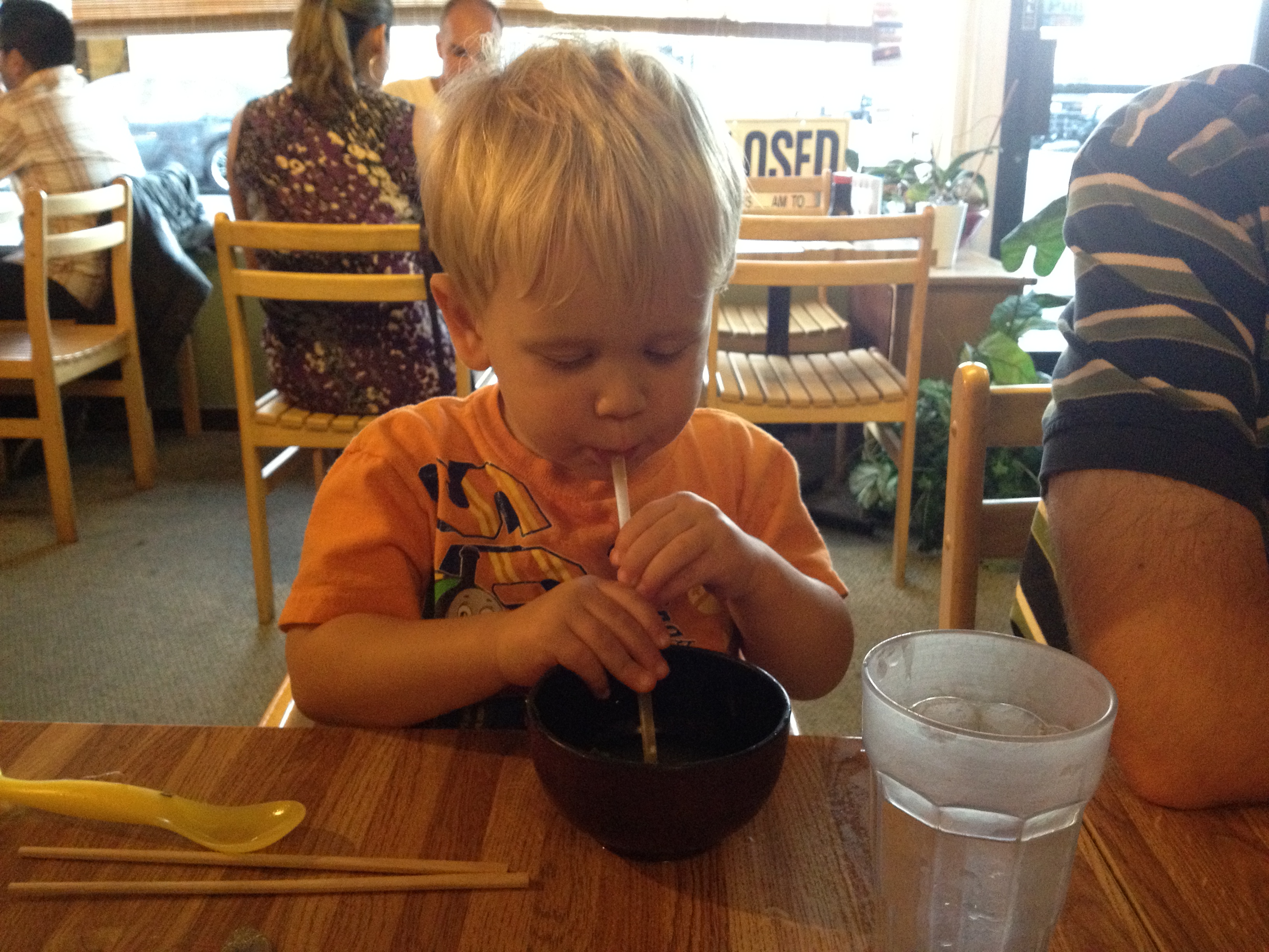 In addition to Happy Hollow, we’ve also enjoyed a few other really fun and memorable times. We recently went out to dinner to our favorite Japanese restaurant, where David insisted on drinking the miso soup with a straw. A bit unconventional, but it was a very efficient delivery method.