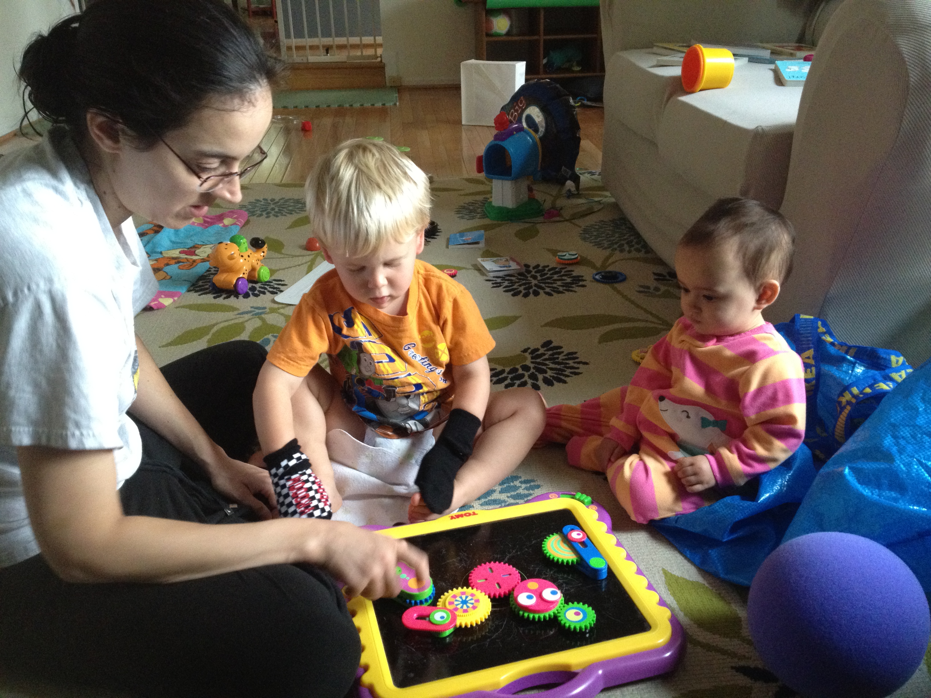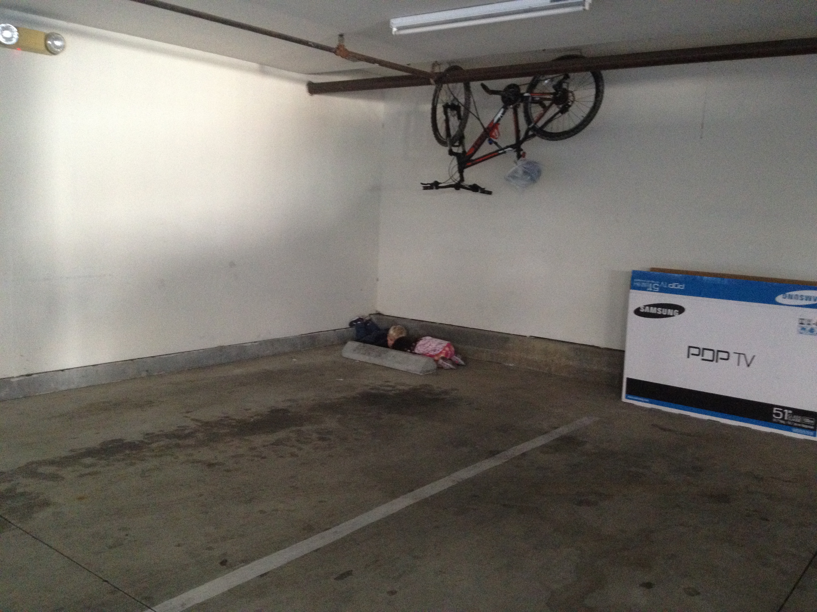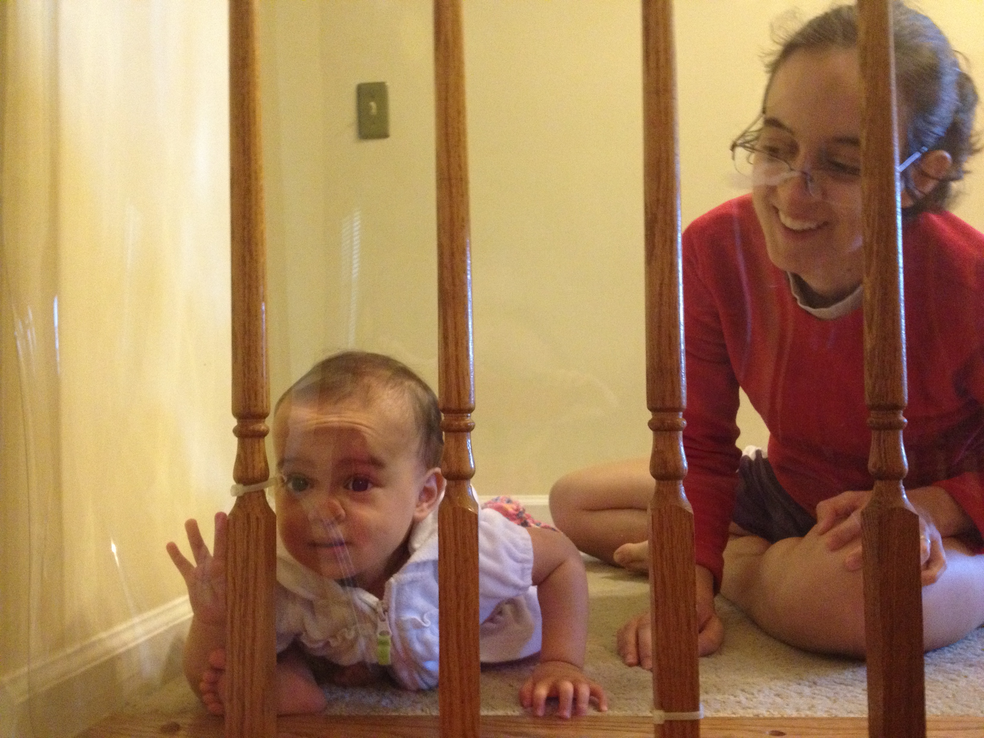 David has also grown quite fond of playing hide and seek. Here is a picture of him hiding with our neighbor, Madeleine, while Chris is seeking. Can you find him?
