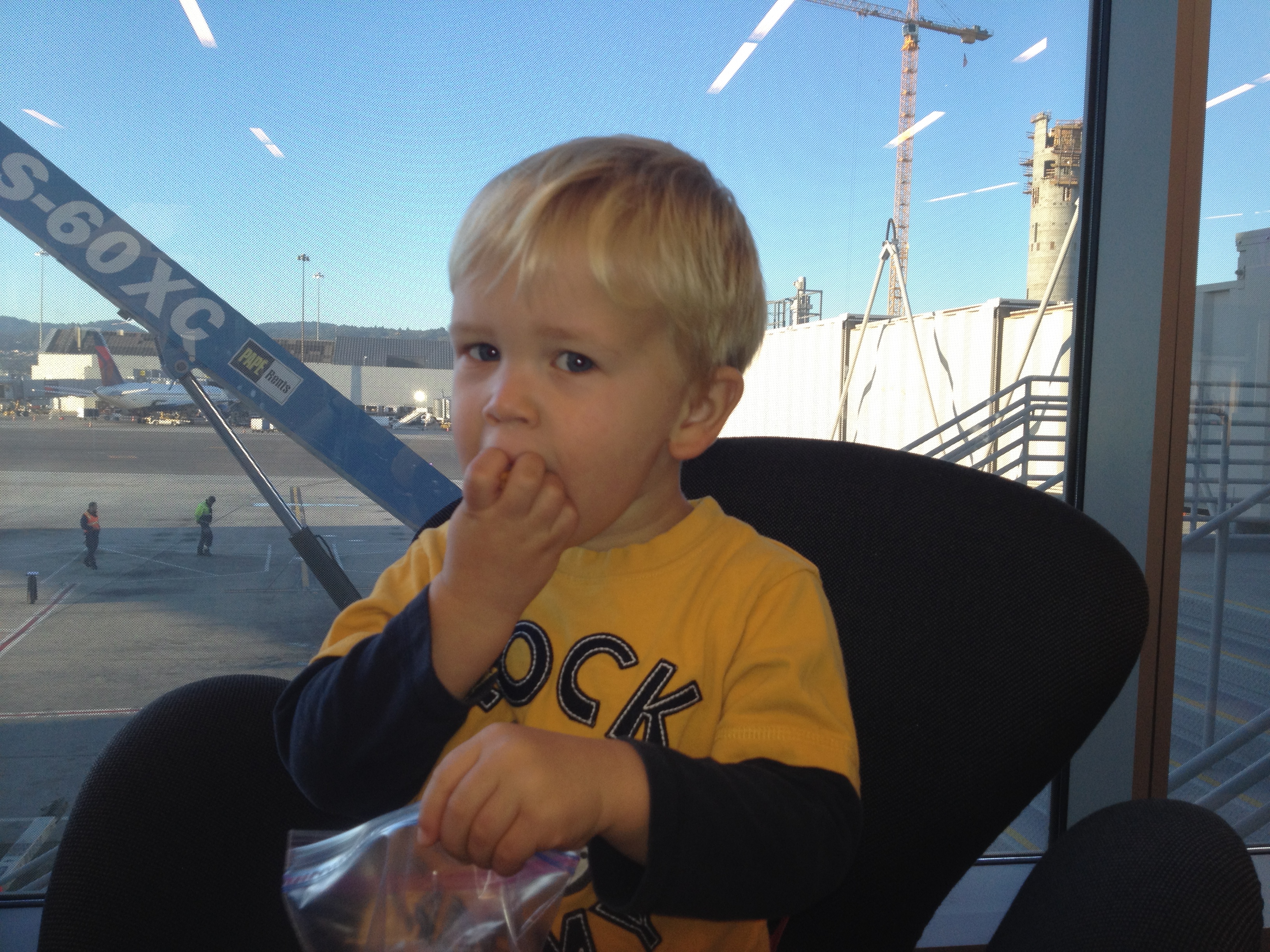 This week, David and I took our first trip without Chris – we went to Virginia to visit our friends Claire, Lin, and Eileen. I was really nervous about the cross-country flights, but David did incredibly well on both the flight there and on the flight home. We’re very thankful to Claire and Lin for making our stay so comfortable. We had so much fun – and we really enjoyed staying in their beautiful new house. It was great to meet Baby Eileen – she sure is a cutie! Here are some pictures.