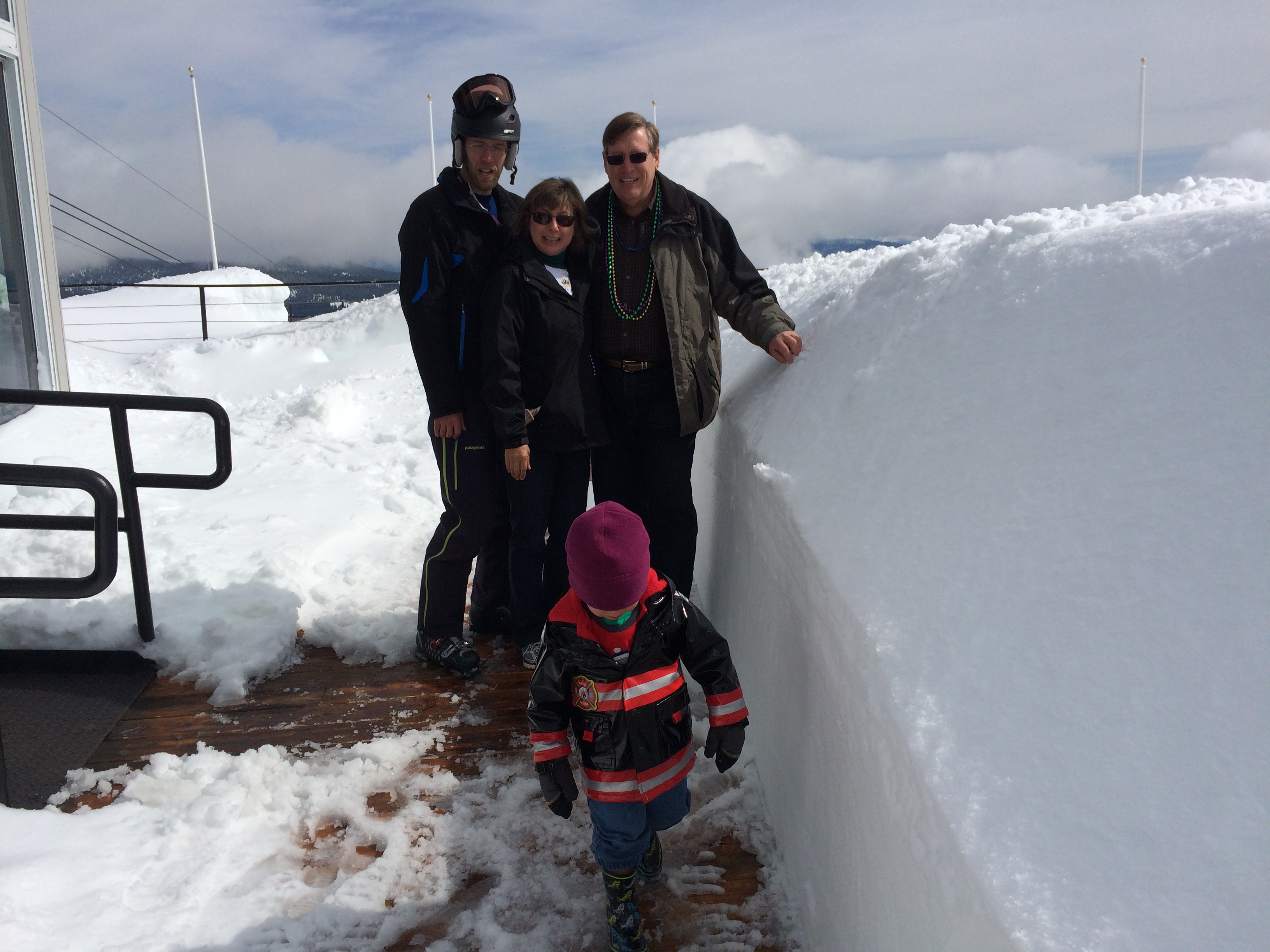 Recently, Paw Paw and Gigi came to celebrate Mardi Gras with a trip to Tahoe. We all had a great time! David loved the snow and all of the extra attention from his grandparents. Chris and I got a lot of time to ski together – which we really appreciated. There wasn’t nearly as much snow as there usually is, but we still had a great time. (At the end of this post, I also included a couple of pictures of David enjoying the really warm weather that we’ve been having here in San Carlos.)